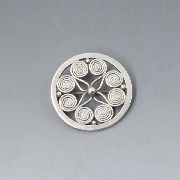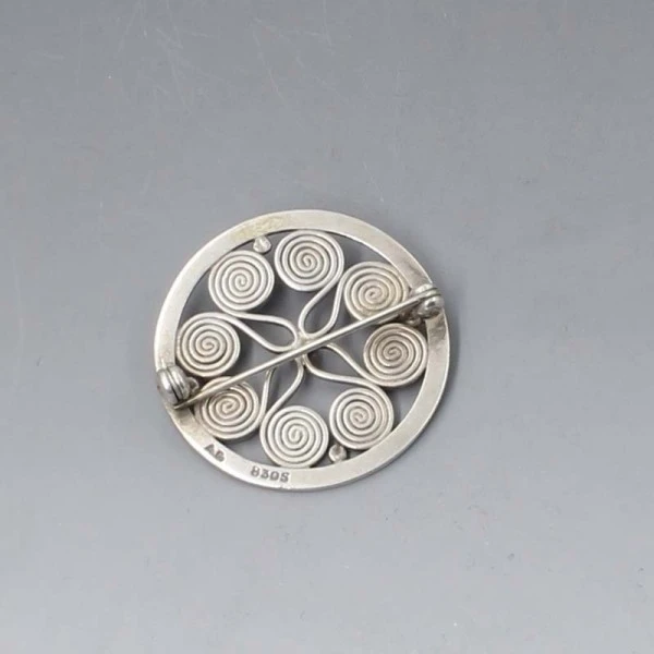 Alexis Godtbergsen, Denmark vintage modernist 830 silver circular brooch. It has a pin and rollover C clasp closure and is signed "AG 830S" on the rear. Weight is 8 grams.The brooch measures approximately 3.3 cm in diameter. It is in very good condition.