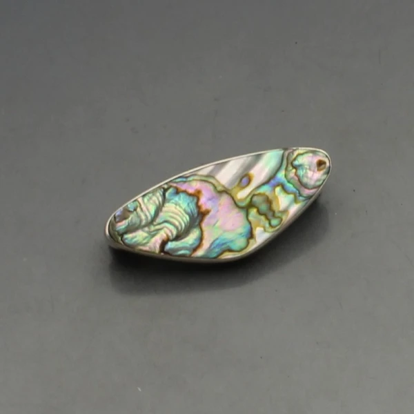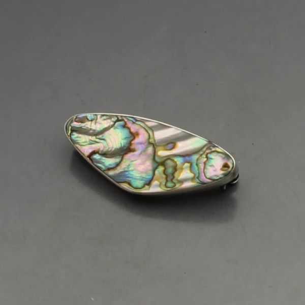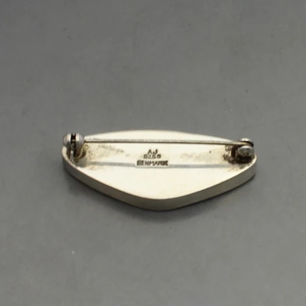 Vintage Arne Johansen, Denmark abelone shell and sterling silver brooch. It has a sterling silver pin and C clasp closure to the rear and measures approximately 4 x 1.7 cm. Weight is 8 grams. It has makers mark "AJ 925" on the rear. It is in very good condition .