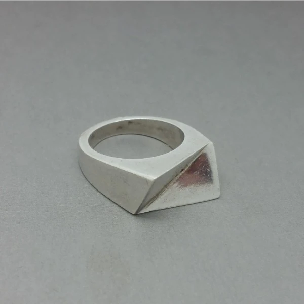 Stylish vintage modernist chunky geometric style ring by Arne Johansen Denmark.It is marked with "AJ 925S DENMARK". The ring is approximately a UK ring size O 1/2 or P. Weight is 14 grams. It is in very good vintage condition with small signs of wear commensurate with age. Condition: Very good vintage condition Colour/gemstone: Silver Metal: Sterling Silver Size:UK Ring Size O1/2 or P Weight: 14 grams Era:
