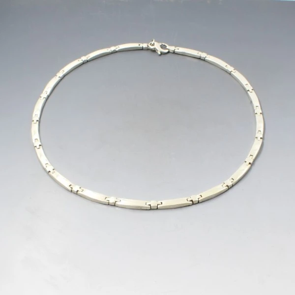 Beautiful vintage Arne Johansen, Denmark, solid sterling silver link necklace with lobster clasp closure. The necklace measures approximately 17 inches (43 cm). Weight is 47 grams. It is signed "AJ 925S" near the clasp. The necklace is in very good vintage condition. Estimated to date from 1960's. A matching Arne Johansen bracelet is available