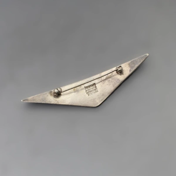 Vintage Bent Eriksen, Denmark, solid sterling silver abstract wing design brooch. It has a pin and rollover C clasp closure. It is signed "Handmade Sterling bent eriksen DENMARK ", on the rear. The brooch measures approximately 7.2 cm x 1.6 cm. Weight is 17 grams. It is in very good condition with small signs of wear commensurate with age