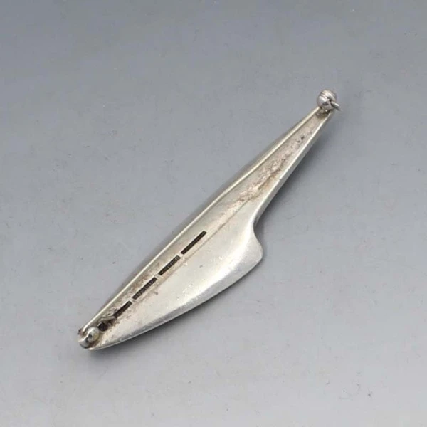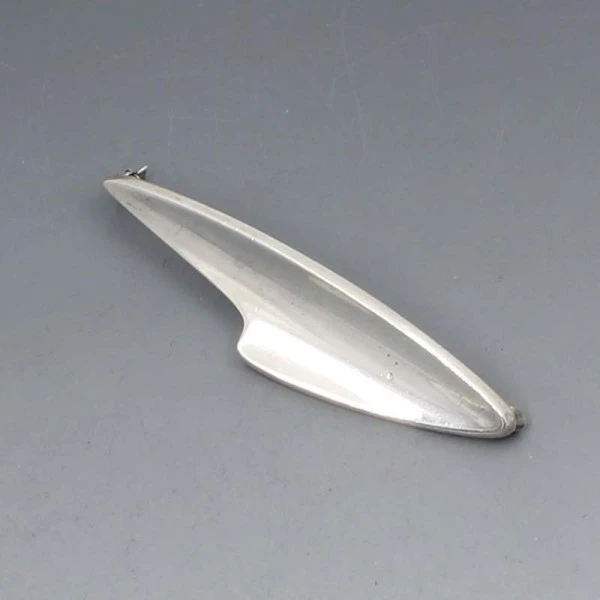 Bent Knudsen, Denmark, 1950's solid sterling silver abstract brooch.It has a pin and rollover C clasp closure. It is signed " STERLING, DENMARK, BENT K 2 " on the rear. The brooch measures approximately 7.1 cm x 1.5 cm. Weight is 23 grams. It is in very good condition with small signs of wear commensurate with age