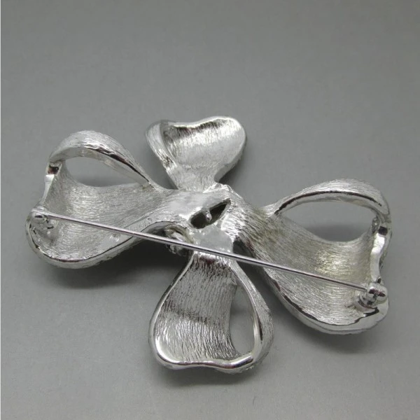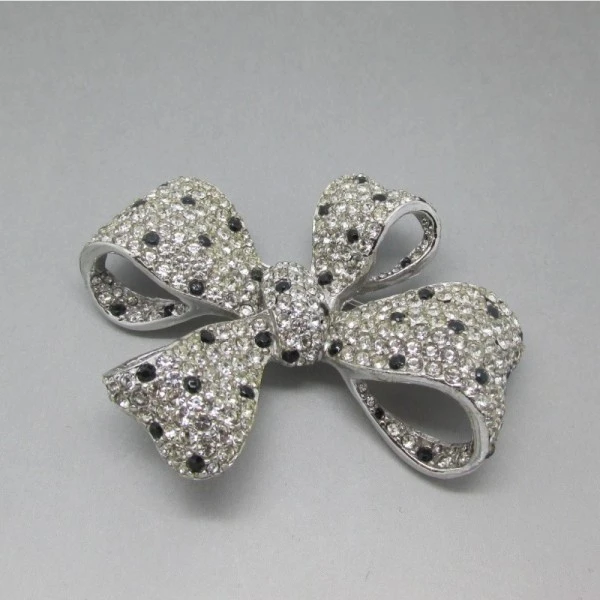 Condition: Excellent Colour: Clear and black crystals Metal: Silvertone Size: 6.7 x 5.3 cm wide Era: 1980's