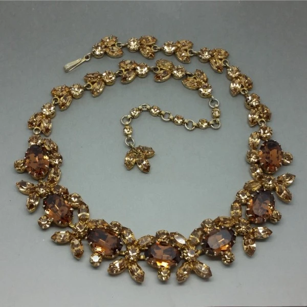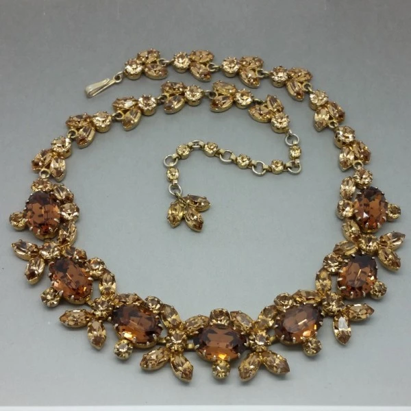 Condition: Very Good Colour/Gemstone: Topaz and citrine coloured crystals Metal: Gold Tone Size: 16 (41cm) to 19 inches (48cm) Era: 1950's