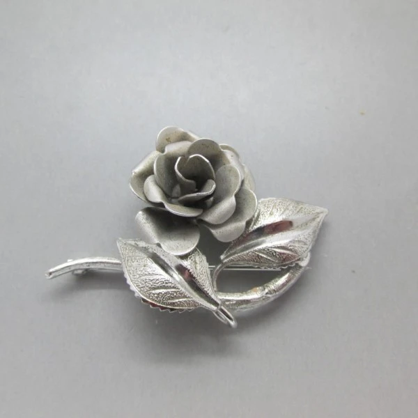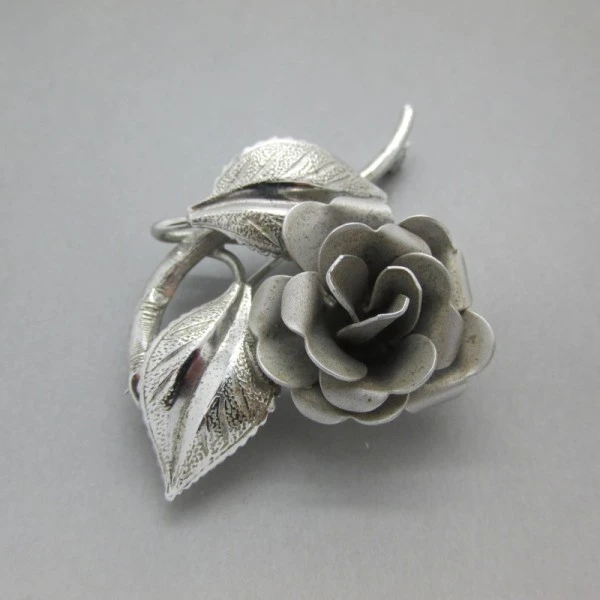 Beautifully detailed sterling silver rose brooch It measures approximately 5 cm long x 3.2 cm wide (at widest part) and has a rollover C clasp pin closure. The rear of the brooch is signed with "ECCO STER" It is in very good condition. Condition: Very Good Colour: Silver Metal: Sterling Silver Size: 5 cm long x 3.2 cm wide (at widest part) approximately Era: