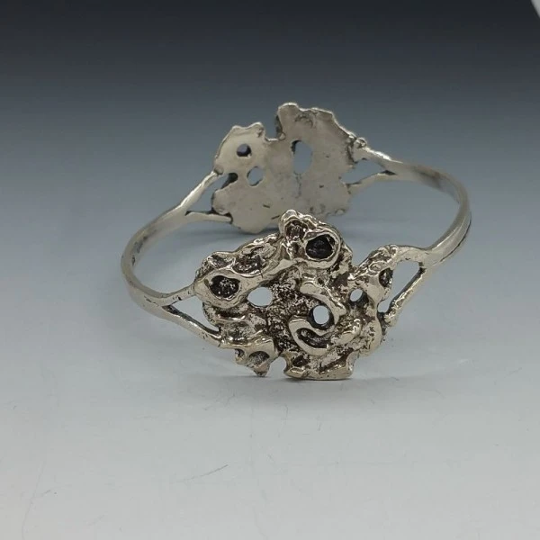 Lovely rare vintage Rita Ferguson, Scotland, silver scarf brooch with leaf detail design. It measures approximately 4.2 cm in diameter (clear internal diameter) Weight is 19 grams. It is signed "RF" on the rear and has silver hallmarks for Edinburgh 1983. It is in very good co..