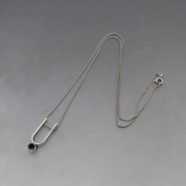 Condition: Very Good Colour/Gemstone: Silver and Smokey Quartz Metal: 813 Silver Size: 2.6 x 0.9 cm pendant approximately with 17.5 inch (45 cm) chain Era: 1960