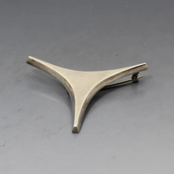 Rare Ernest Blyth for Ivan Tarratt Ltd modernist sterling silver "Stella" brooch. It is signed "Ernest A Blyth", "IVAN TARRAT ENG" "G.T.Ld", and has silver hallmarks for Birmingham 1968. The brooch measures approximately 5.5 x 5.6 cm. Weight is 17 grams. It is in very good condition.