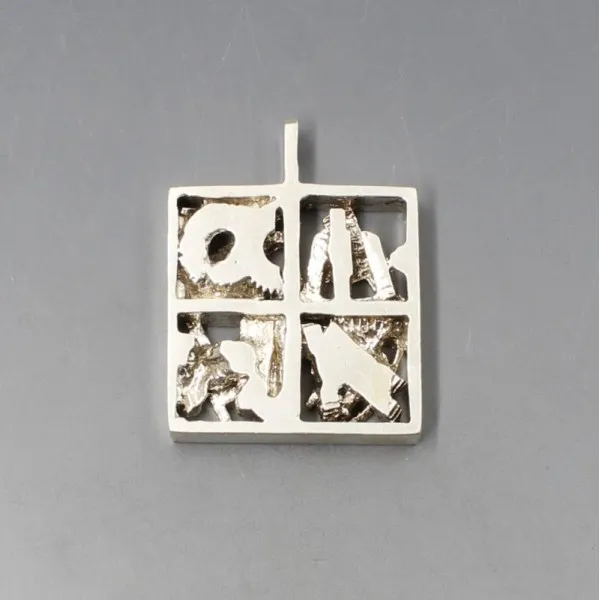 Rare vintage Finnish modernist solid 830 silver pendant. The pendant is square in shape with a modernist abstract design and pendant bail. It measures approximately 2.9 x 3.7 cm. Weight is 27 grams. It is marked "FINLAND 830 S" on the bail and is in very good condition. Estimated to date from 1960's to 1970's.