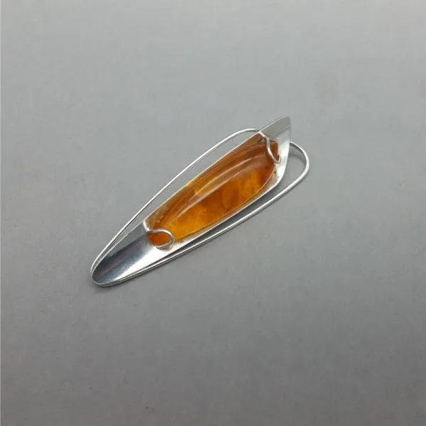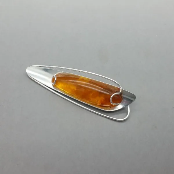 Condition: Very Good Colour/gemstone: Amber Metal: 835 Silver Size: 6.4 cm x 2 cm wide (at widest part) Weight : 9.3 grams.
