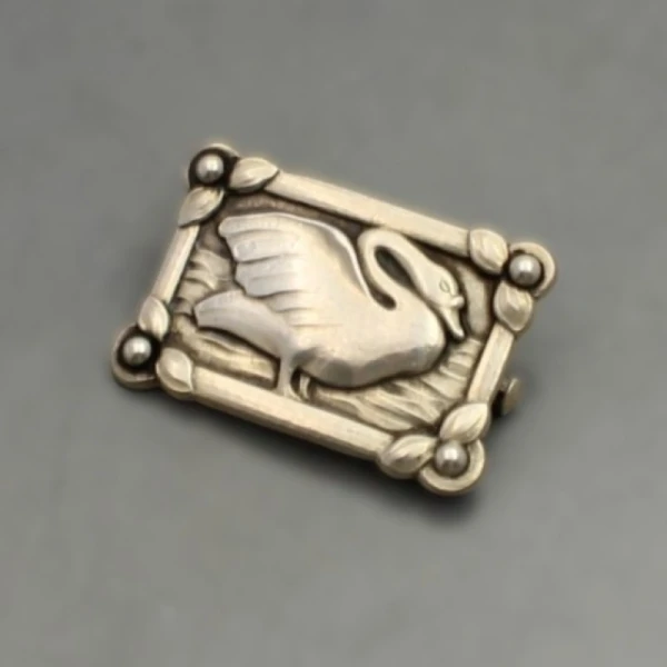 Vintage Georg Jensen sterling silver swan brooch #213.  The brooch is signed "STERLING DENMARK 925  213 "and has makers mark "GI" (this was one of the older marks used by the firm).  It has a silver pin and trombone clasp closure to the rear.  The brooch measures approximately 3 x 2 cm. Weight is 6 grams. It is in very good condition. Estimated to date from 1930's.