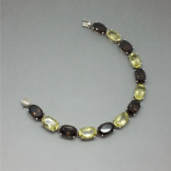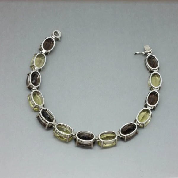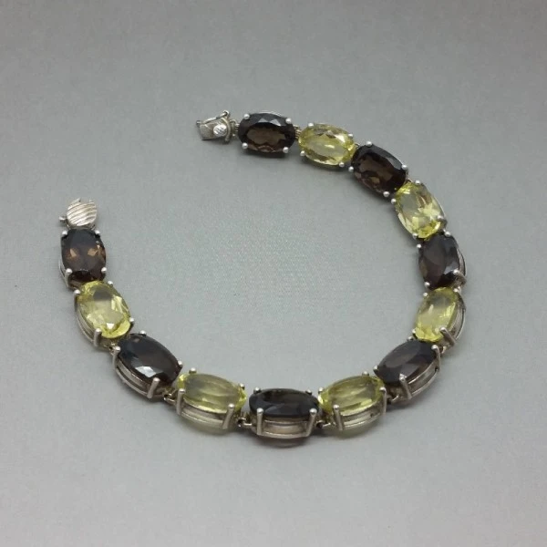 Condition: Very good Colour/Gemstone: Citrine and Smokey Topaz Quarzt Metal: Sterling Silver Size: 7.5 inches (18 cm) Era: