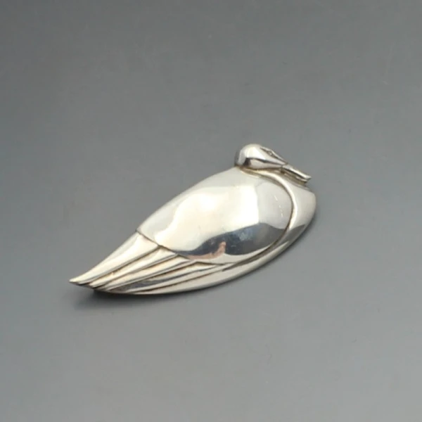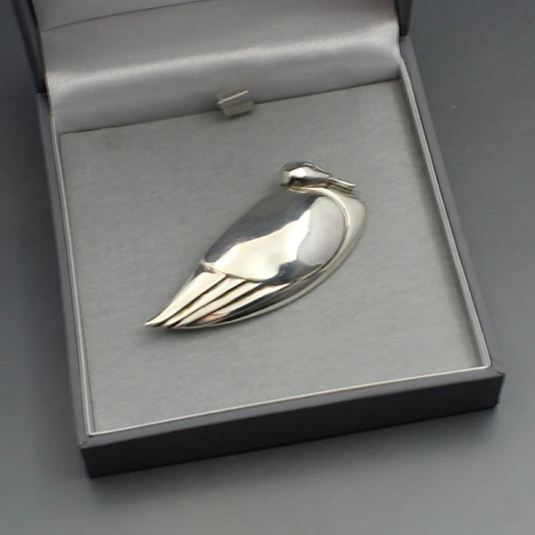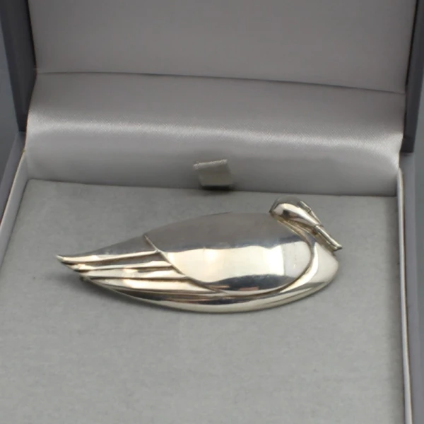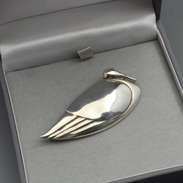 Beautiful rare vintage Graham Leishman Stewart sterling silver swan brooch. The brooch measures approximately 5.8 x 2.6 cm and has a silver pin and rollover C clasp closure to the rear. Weight is 14 grams. The brooch is signed with makers marks "GLS" and has silver hallmarks for Edinburgh 1989 on the rear. It iis in very good condition