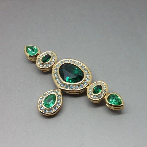 Condition: Excellent Colour/gemstone: Green crystal and gold tone Metal: Gold Tone Size: 7 cm x 3.5 cm Era: