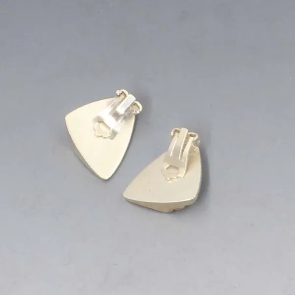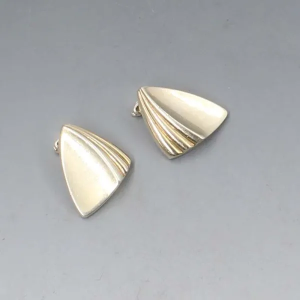 HC OSTREM Norway, vintage modernist 830 silver earrings with clip on ear fittings. They are signed with the HC Ostrem mark "OXO" and "830S". They each measure approximately 2.3 x 2 cm. Total weight is 5 grams. They are in very good condition with small signs of wear commensurate with age.