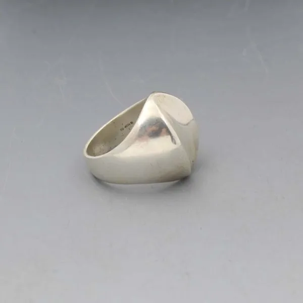 A stylish Hans Hansen, Denmark vintage modernist sterling silver ring. It has a sculpural style to it and is signed " Hans Hansen 925S DENMARK". It is approximately a UK ring size J1/2 or K. It is in very good vintage condition and is estimated to date from the 1960's to 70's. Condition: Very good vintage condition Colour/gemstone: Silver Metal: Sterling Silver Size:UK Ring Size J 1/2 or K Era: Estimated 1960's to 70's