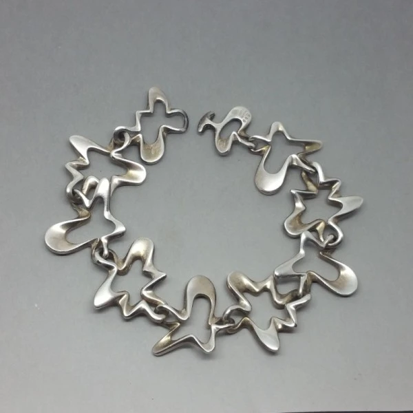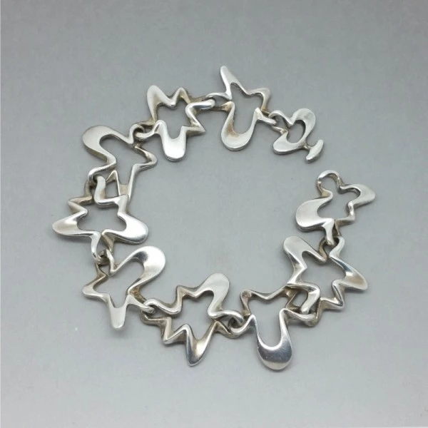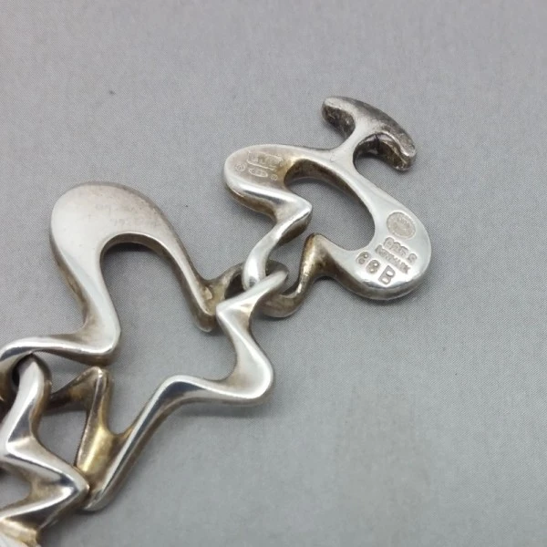 Henning Koppel for Georg Jensen sterling silver "SPLASH" bracelet. It was designed in the 1940's by Henning Koppel in Denmark and displays his typical flowing signature style. It measures 19.5 cm (7.75 inches) and is in very good condition. Weight is 34.8 grams. It is signed "GEORG JENSEN, 925S DENMARK, and 88B"