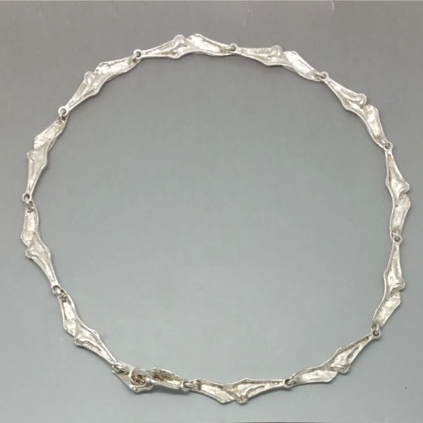 Beautiful sterling silver vintage modernist 1950's link necklace by Henry Andersen of Denmark. It comprises a series of textured sterling silver links and fastens with a foldover clasp type closure. It is marked "925S" and "HA" on the rear. It measures 16 inches (41cm) It is in very good vintage condition.