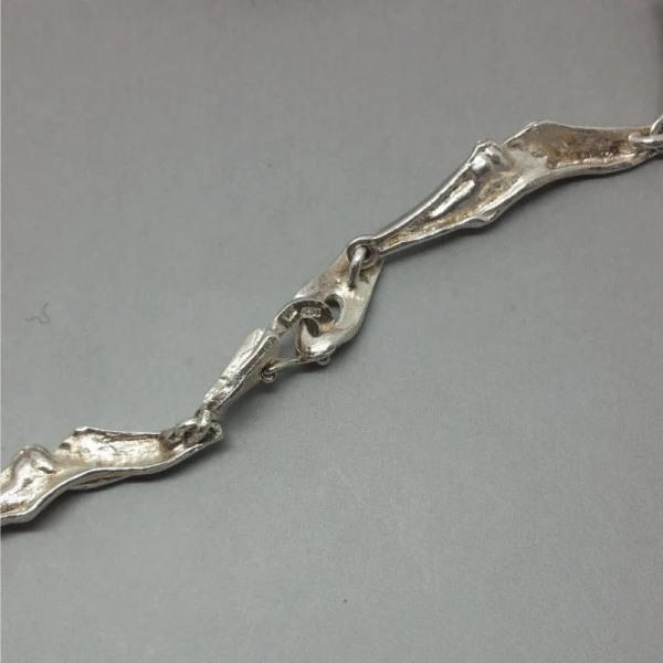 Stunning vintage modernist sterling silver bracelet by Matti J. Hyvarinen, Finland. It is a silver link bracelet with modern abstract raised effect design on the links. It has a flat box clasp closure with a safety catch and measures approximately 7.5 inches ( 19cm). Weight ..