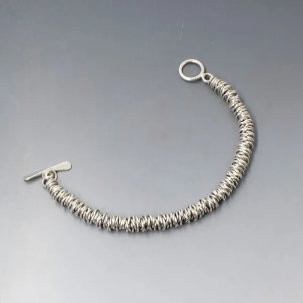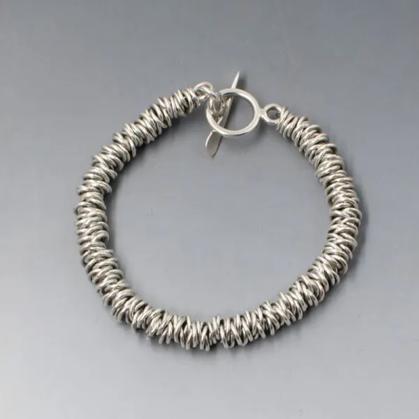 Pre owned but unworn Hi Ho silver sterling sliver rings bracelet. The bracelet measures approximately 19 cm (7 inches) and has a silver toggle clasp closure. Weight is 39 grams. It is marked "HH" and "925" and is in very good condition.