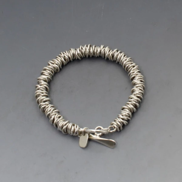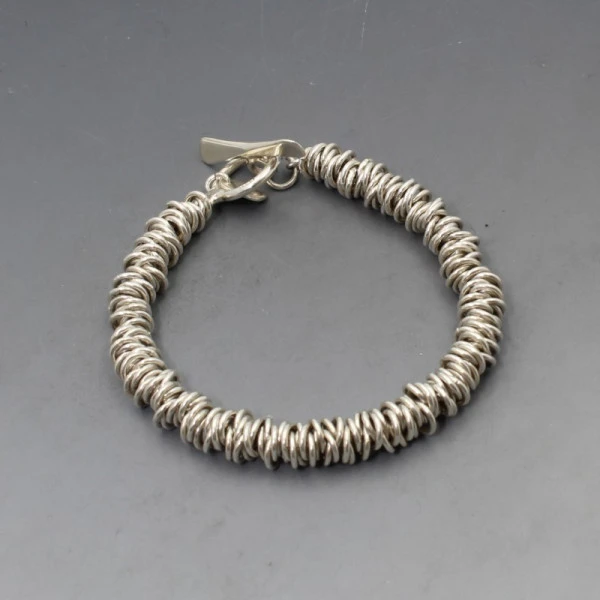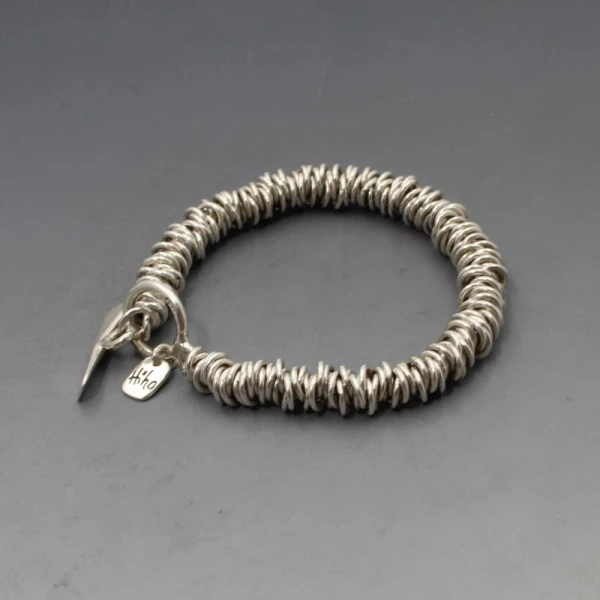 Pre owned but unworn Hi Ho silver sterling sliver rings bracelet. The bracelet measures approximately 18 cm (7 inches) and has a silver toggle clasp closure with the Hi Ho tag. Weight is 35 grams. It is marked "HH" and 925". It is in very good condition.