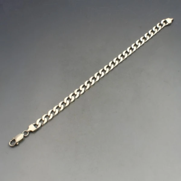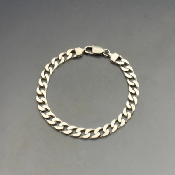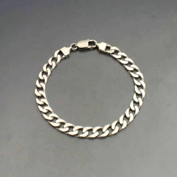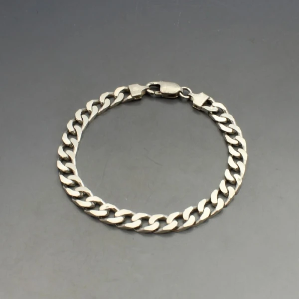 Vintage Italian flat sterling silver curb chain bracelet with lobster clasp closure. It measures approximately 20.5 cm long (8 inches) x 0.7 cm wide. Weight is 19 grams. It is marked "925 ITALY". It in very good condition with small signs of wear commensurate with age.
