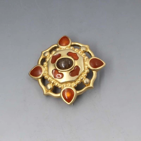 Condition: Very good Colour:Gold and amber colour Metal: Gold Tone Size: 4.8 cm x 4.3 cm approximately Era: Estimated 1980's