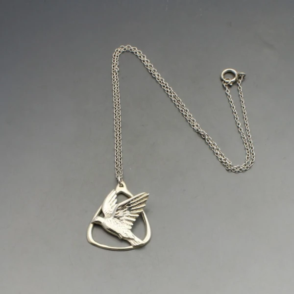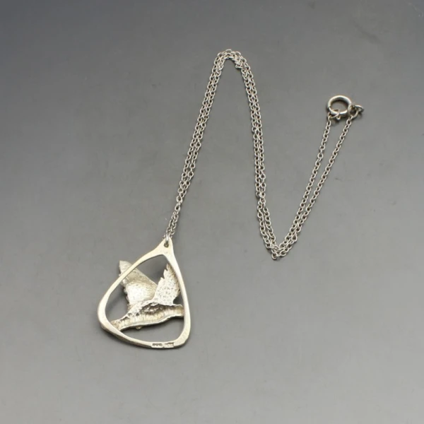 Vintage designer Magnus Maximus Design sterling silver flying bird pendant. The pendant measures approximately 3.3 x 2.9 cm and it has an 19 inch (48cm) sterling silver chain. Weight is 11 grams. It is signed with makers marks "MMD" and has silver hallmarks for Edinburgh 1978 on the rear. It is in very good condition .