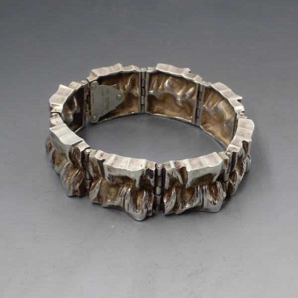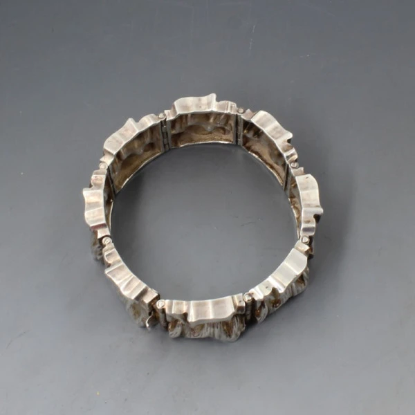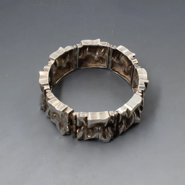 Stunning vintage modernist Matti J. Hyvarinen, Finland, chunky sterling silver bracelet. It is a solid heavy silver link bracelet with raised abstract design links. It has a flat box clasp closure and measures approximately 18 cm long (7 inches) x 19 cm wide. ..