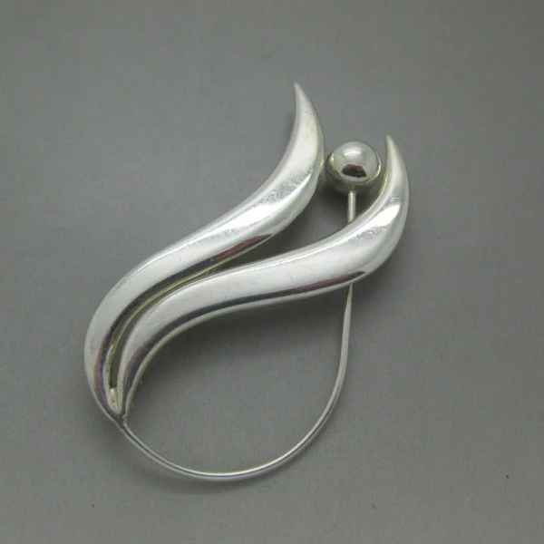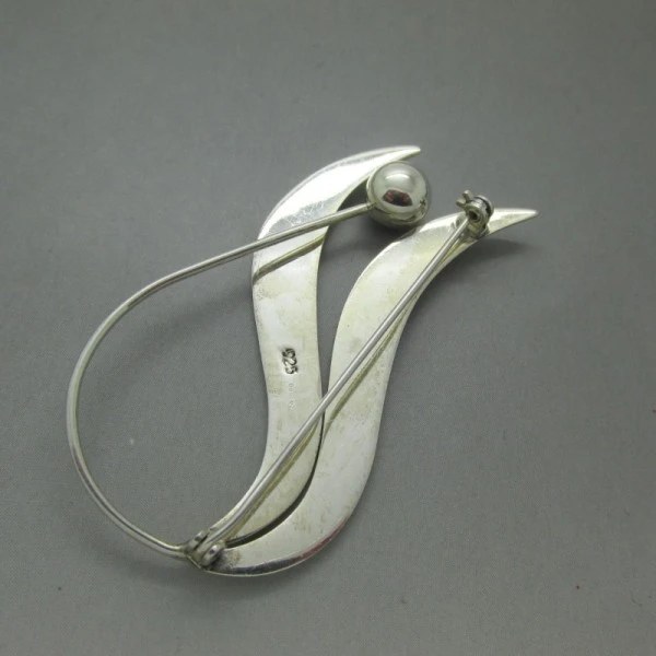Beautiful quality vintage modernist sterling silver abstract brooch. It measures 6 cm x 2.5cm wide and has a rollover C pin closure to the rear .It is marked with "925" for sterling silver on the rear. It is in very good condition. Condition: Very Good Colour: Silver Metal: Sterling Silver Size: 6 cm long x 2.5 cm wide (at widest part) approximately Era: 1990's