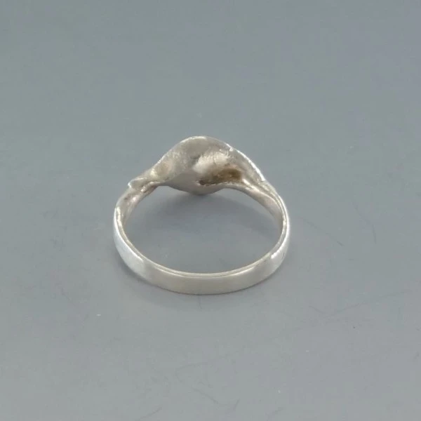 Simple vintage modernist sterling silver ring with textured detail. It is marked "STERLING 925 "on the inside part. The ring is approximately a UK size P. It is in very good condition. Condition: Very good condition Colour/gemstone: Silver Metal: Sterling Silver Size:UK Ring Size P Era: