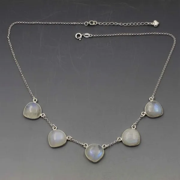 Colour: Silver Gemstone: Moonstone Metal: Sterling silver Chain Length: 17 to 19 inches inches (43 to 48 cm), moonstone cabochons are 1.4 x 1.4 cm