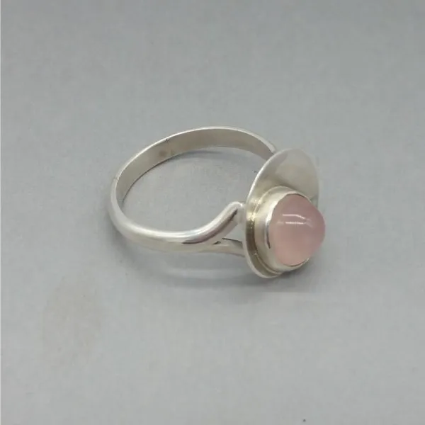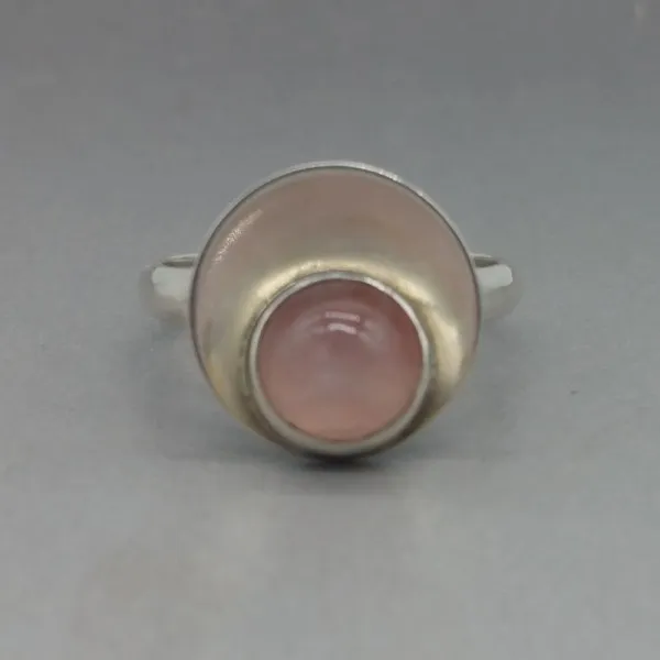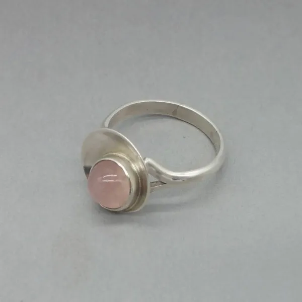 NE From , Denmark , vintage rose quartz and sterling silver disc ring. The ring is marked "STERLING DENMARK, NE FROM , 925S" on the rear. The ring is approximately a UK size N1/2 or O It is in very good condition. Condition: Very good condition Colour: Silver and Rose Qu..