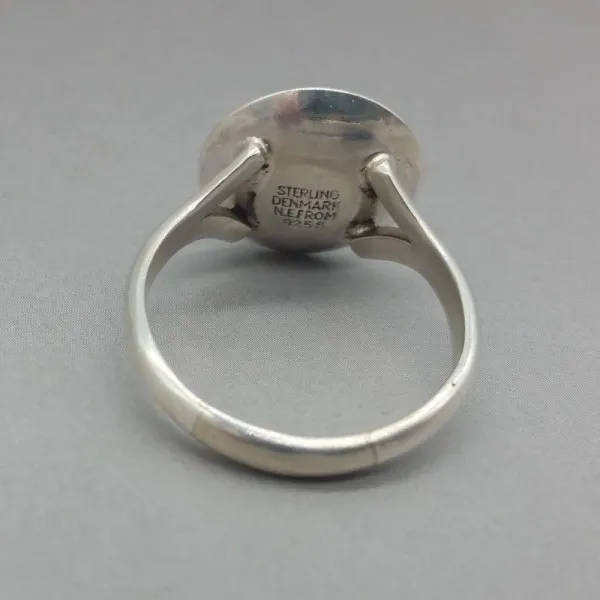 Vintage NE From , Denmark , rose quartz and sterling silver ring. The ring is marked "STERLING DENMARK, NE FROM , 925S" on the rear. The ring is approximately a UK size S or S1/2 It is in very good condition. Condition: Very good condition Colour: Silver and pink rose quartz Metal: Sterling Silver Size:UK Ring Size S or S1/2 Era: