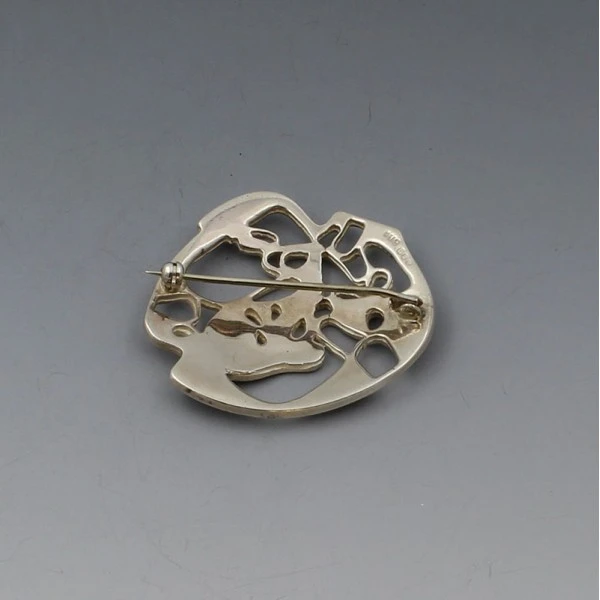 Eiler and Marloe Denmark, 830 silver deer in foliage brooch. It has a pin and C clasp closure to the rear. It it signed "830S E & M 217". Weight is 11 grams. It measures approximately 3.9 X 2.5 cm . It is in very good vintage condition. Condition: Very good condi..