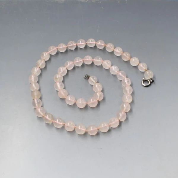 Condition: Very Good Colour/Gemstone : Pink rose quartz beads Metal: Sterling silver Size: 19 inches (48 cm) Era: Estimated 1980's to 1990's