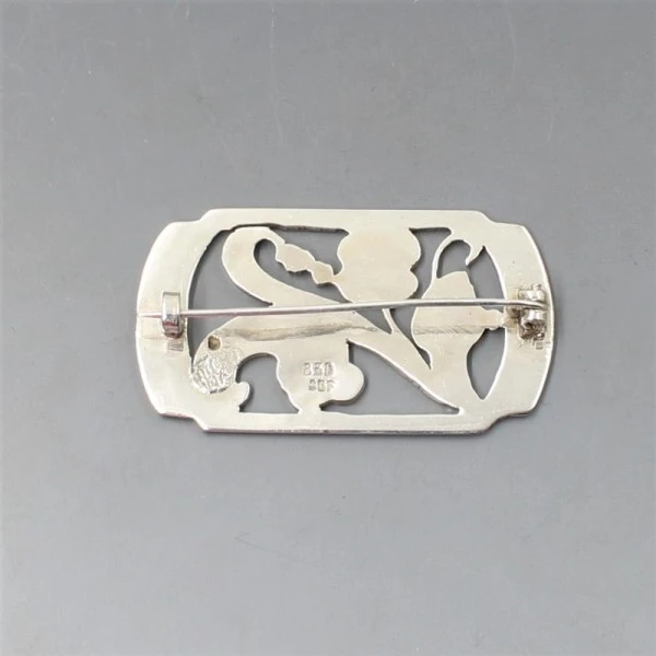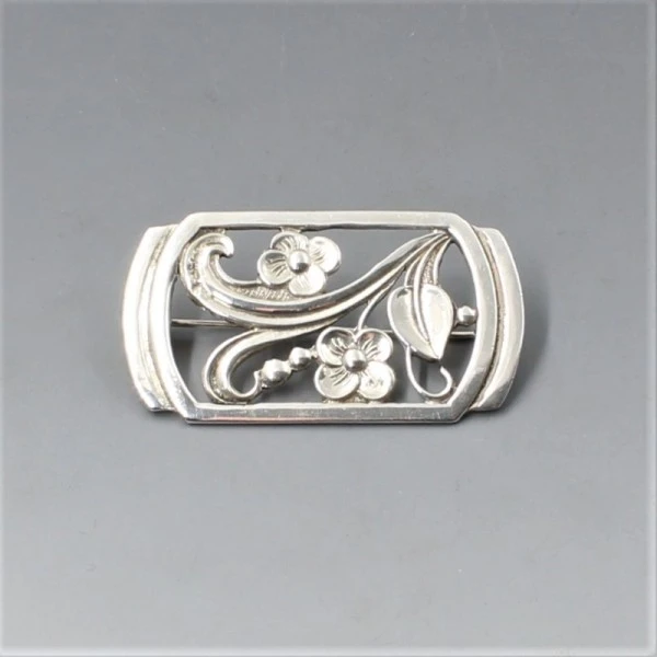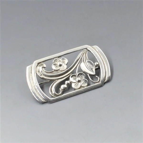 Vintage S Christian Fogh, Denmark 830 silver flower brooch. It has a pin and C clasp closure to the rear. It is signed "830 SCF" on the rear. The brooch measures approximately 4.8 cm x 2.6 cm. Weight is 10 grams. It is in very good condition. Estimated to date from the 1960's.