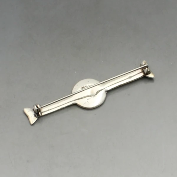 Lovely Franz Scheurle blue sodalith and sterling silver vintage modernist flower brooch. It has a pin and rollover C clasp closure to ther rear .It is signed "925 and FS " on the rear. It is in very good condition and measures approximately 3.7 m long x 2.6 cm wide. Weight is 1..