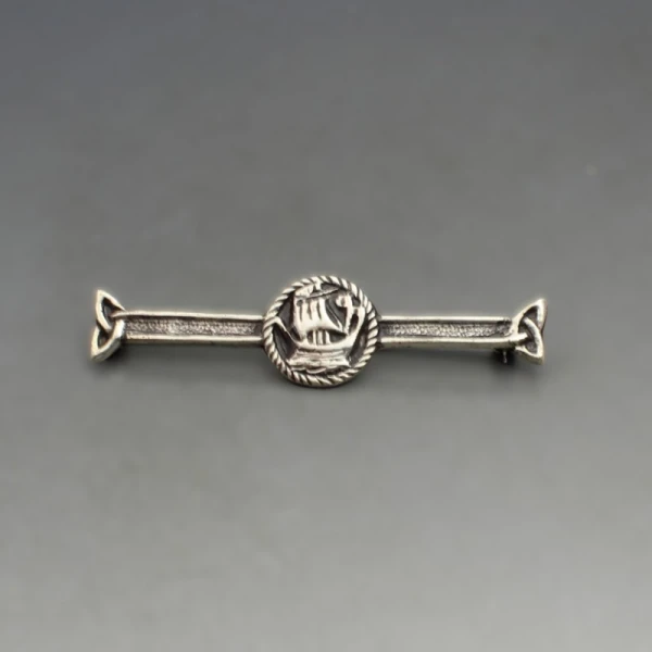 Large rare vintage modernist brooch designed by Eigel Jensen for Anton Michelsen Denmark, with with two long slim silver leaves. The rear of the brooch has a pin and C clasp closure. It is signed "AM STERLING DENMARK" and "EJ". It also has British silver import marks an..