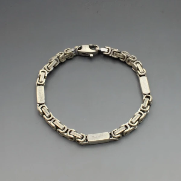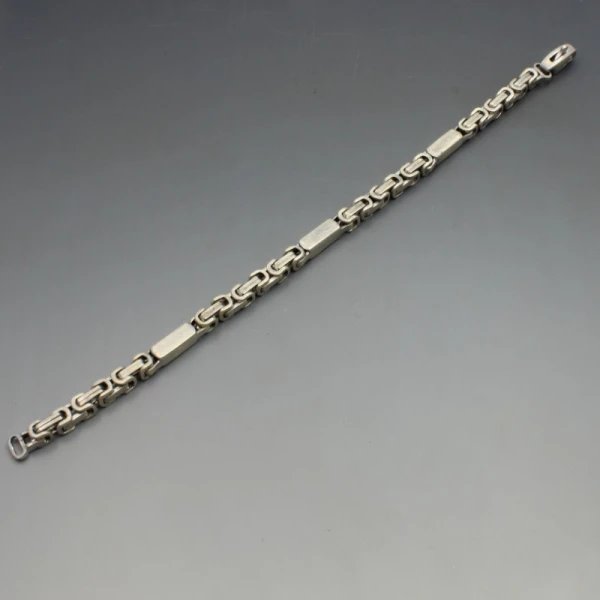 Vintage sterling silver bar and chain bracelet. It measures approximately 21 cm long (8 inches) x 0.4 cm wide and has a silver lobster clasp closure.Weight is 29 grams. It is marked "925" and also has indistinct makers marks. It in very good condition with small signs of wear commensurate with age.