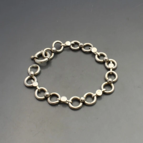Condition: Very good condition with small signs of wear commensurate with ageColour/Gemstone: Silver Metal: Sterling SilverSize: 18.5 cm long (7 inches) approximately x 1 cm wideWeight :22 gramsEra: