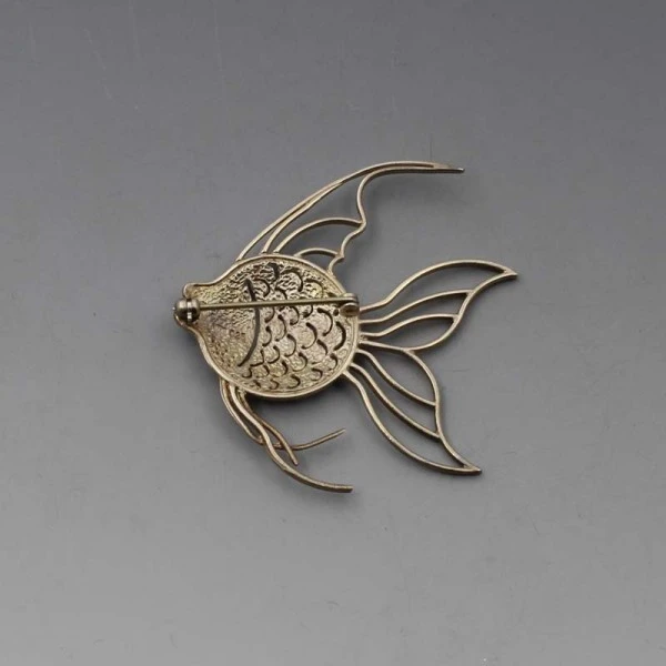 Lovely Stewart Moar, Orkney sterling silver angelfish brooch. It has a pin and rollover C clasp closure to the rear. It is signed with the makers mark (slightly indistinct) and "925" on the rear. The brooch measures approximately 5 cm x 4.8 cm. Weight is 6.2 grams. It is in very good condition