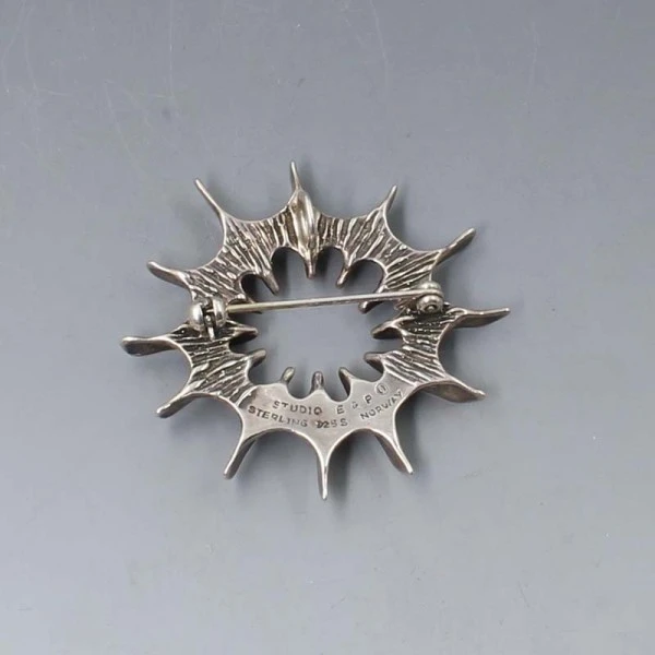 Lovely Studio Else and Paul, Norway, vintage modernist sterling silver brooch or pendant. The rear of the brooch is signed "STUDIO E & P STERLING 925S NORWAY". It has a pin and C clasp closure to the rear as well as a pendant fitting. It measures approximately 4.4 cm in diameter. Weight is 15 grams. It is in very good condition