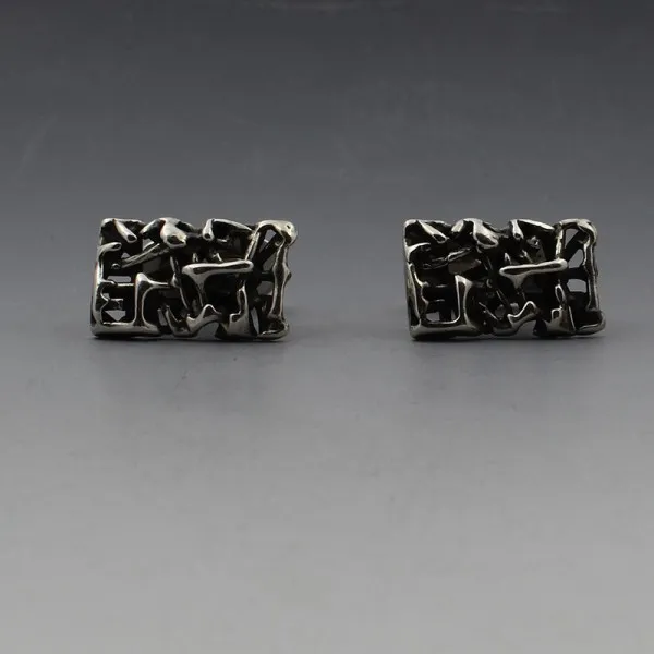 Stylish Studio Else and Paul Norway, 1960's vintage modernist cufflinks. They are rectangular in shape with an abstract textured finish to the front. The side of each cufflink is marked "925 S STERLING NORWAY". Each frontage measures approximately 2.1 x 1.3 cm. Weight is 12.4 grams.They are in very good condition.
