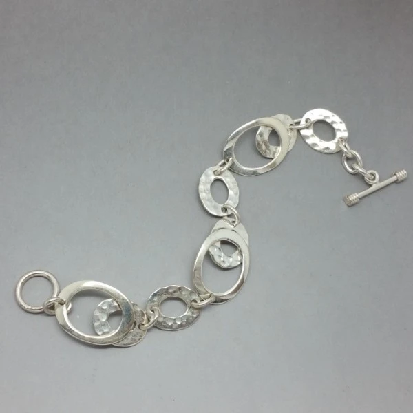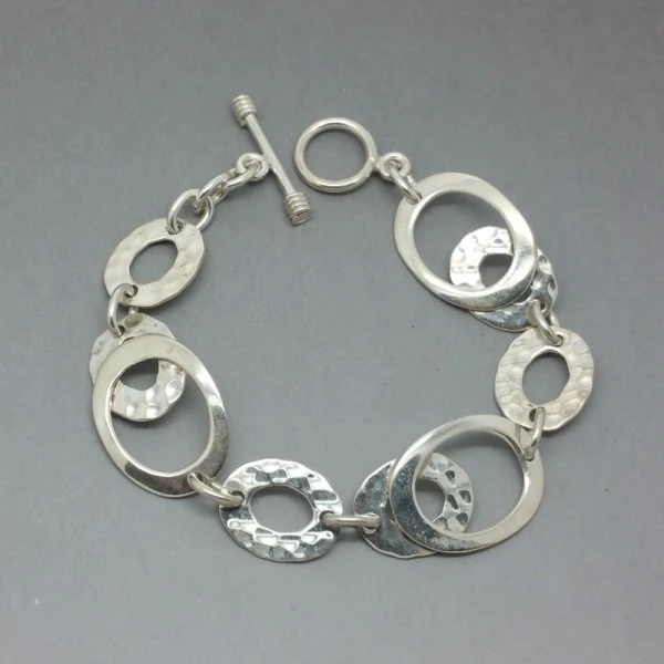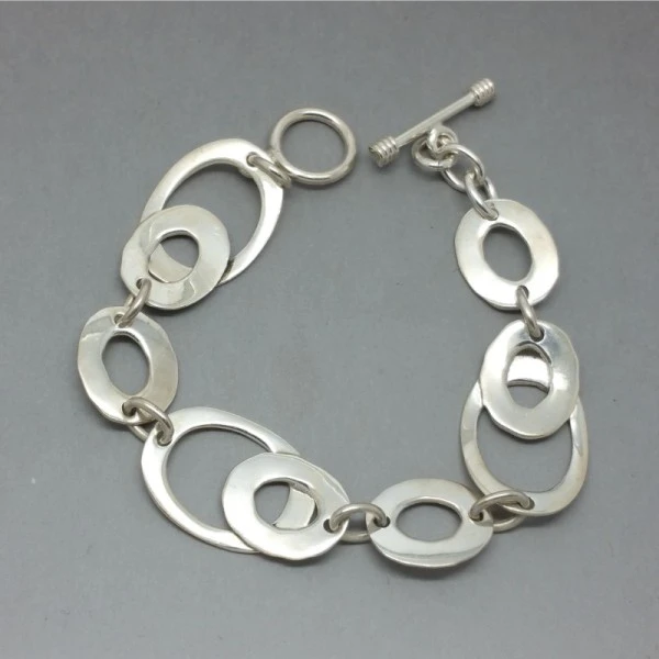 Lovely quality vintage sterling silver bracelet. It comprises a series of oval shaped links with a mixure of smooth and textured finish sterling silver links. The bracelet measures approximately 7 inches (18 cm) .It has a toggle clasp closure. It is marked with "925" and has silver import hallmarks on the clasp. Weight is 18.6 grams.It is in very good condition Condition:Very good Colour/Gemstone: Silver Metal: Sterling Silver Size: 7 inches (18 cm) Era:
