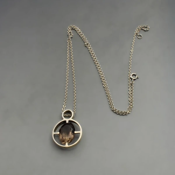 Vintage Tony Michael Holland Highland Line smokey quartz and sterling silver pendant. The pendant measures approxmately 3.2 x 2.3 cm and is has a 52 cm (20 inch) sterling silver chain. It is signed with makers marks "HL" and has silver hallmarks for Edinburgh 1984 on the rear. Weight is 12 grams. It is in very good condition.