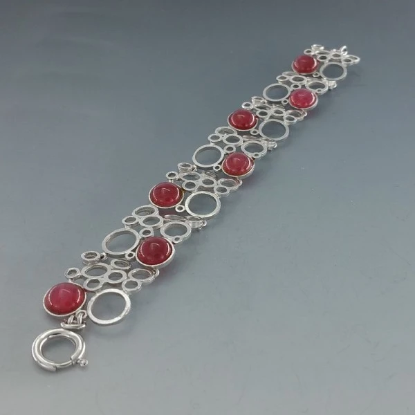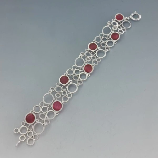 Beautiful Unidor 1960's vintage modernist brutalist silver bracelet with pink gem stones. It is marked with "UNIDOR and 925" .The bracelet measures approximately 21 cm (8.5 inches). It is in very good vintage condition.Weight is 26.6 grams. It is estimated to date from the 1960's.