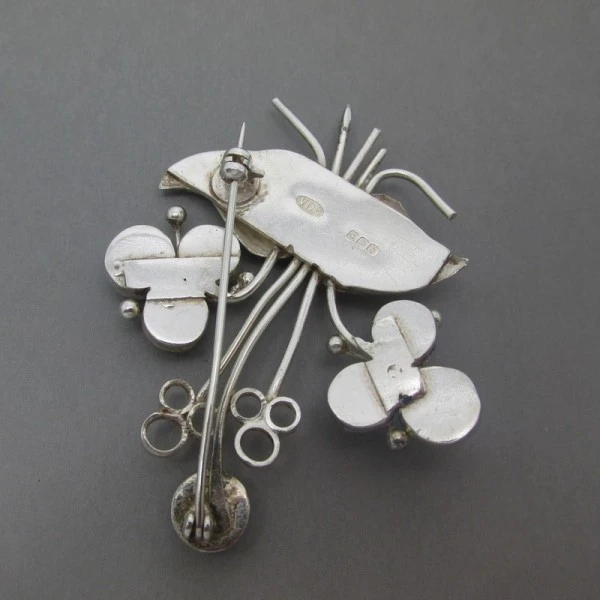 Very beautiful Art Deco vintage Georg Jensen /Arno Malinowski large sterling silver butterfly brooch. It has a pin and rollover C clasp to the rear. It it signed "925 S STERLING GJ DENMARK 283" on the rear. It is in very good condition. The brooch measures approximately 5..