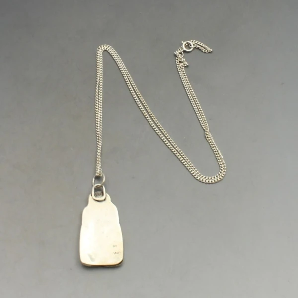 Condition: Very Good with small signs of wear commensurate with age Colour:Silver Metal: Sterling Silver Size: Pendant measures approximately 3.2 x 1.6 cm with 18 inch (45cm) long chain. Era:
