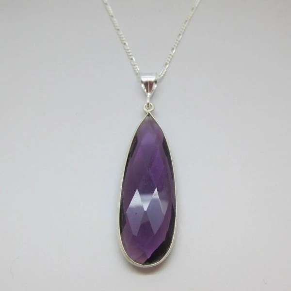 This prurple amethyst gemstone pendant has a simple and classic style making it suitable for both nights out or casual wear. All our gemstone pendants and necklaces are handmade with care to provide beautiful original gemstone jewellery.